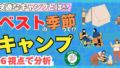 ライフスタイル・趣味 春夏秋冬のキャンプでベストシーズンはいつ?6つの視点(衣・食・住・装備・行き道・景色)で徹底比較! キャンプのベストシーズンはいつ?初心者からベテランまで必見。春夏秋冬のキャンプを「衣食住・装備・景色」6視点で徹底比較し、快適な秋キャンプが総合1位の理由と、あなたの目的に合う季節を公開。 2025.10.12 ライフスタイル・趣味
