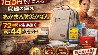 快適ライフ【2026年最新】あかまる防災かばん 44点レビュー!10年交換保証が「1日5円」の理由 あかまる防災 リュック 44点の防災グッズを50代がレビュー。最大40%OFFで購入できる今、10年保証付きで1日わずか約5円の『安心のサブスク』が手に入ります。東日本大震災の教訓とSIB製薬の信頼が詰まった、本気の備えを徹底解剖します。 2026.02.19快適ライフ