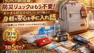 快適ライフ【50代の断捨離】防災リュックはもう不要。「あかまる防災かばん」に切り替えて、身軽な安心を手に入れた話 50代からの防災は「断捨離」が正解。重すぎる自作リュックを手放し、消防士監修の「あかまる防災かばん」へ切り替えた理由を公開。10年無償交換保証で、賞味期限管理という「名もなき家事」からも解放されます。1日5円で手に入る、身軽で確実な安心とは? 2026.02.26快適ライフ