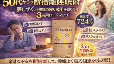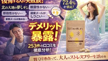 快適ライフ北の大地の夢しずくのデメリットを暴露。253件の口コミから見えた「後悔する人」の共通点 北の大地の夢しずくのデメリットを253件の口コミから徹底検証!50代が直面する「尿意」や「即効性のなさ」をどう攻略すべきか?メーカー視点の解決策で不安を断捨離。欠点を理解した上で、最高の熟睡を手に入れるための賢い選択肢を提示します。 2026.03.14快適ライフ
