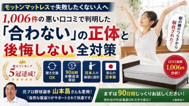 快適ライフモットンマットレスで失敗したくない人へ|1,006件の悪い口コミで判明した「合わない」の正体と後悔しない全対策 モットンで後悔したくない人必見!1,006件の口コミから判明した失敗原因と全対策を解説。合わない時の「全額返金保証」と「硬さ交換」は公式サイト限定!楽天・Amazon購入の罠を避け、リスクゼロで腰痛を改善するプロの投資術を伝授します。 2026.04.23快適ライフ