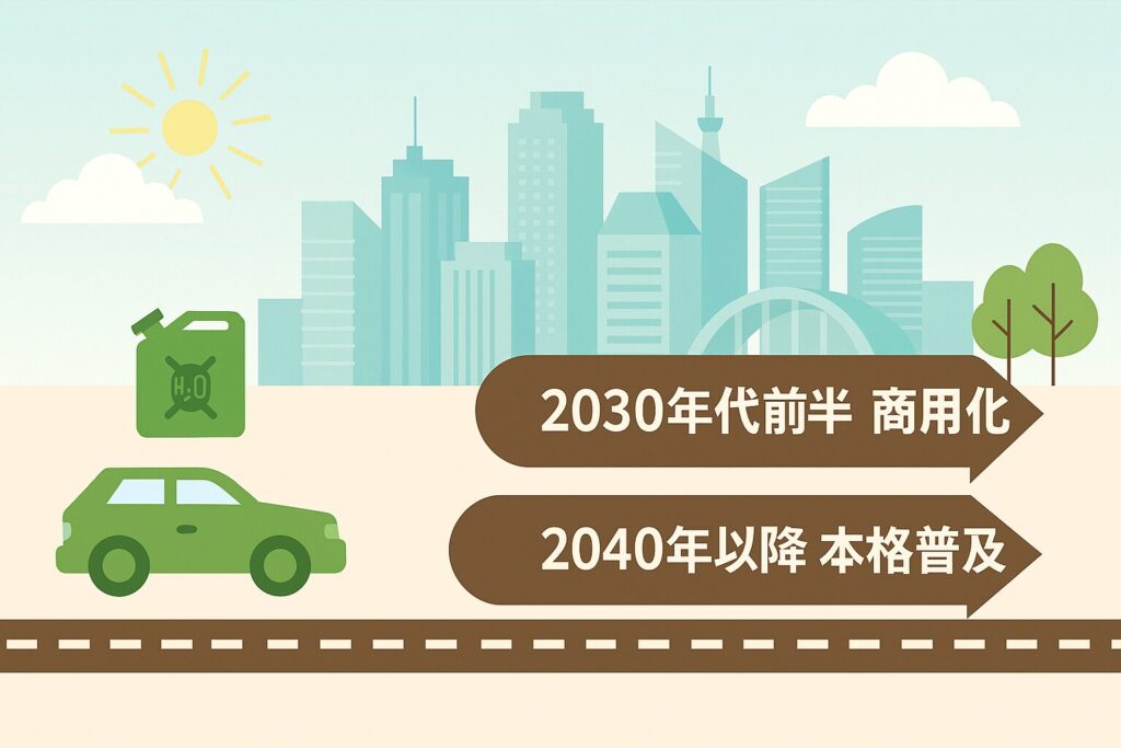 インフラ整備: 製造・供給インフラが整備され、ガソリンスタンドでの給油が一般的になります。