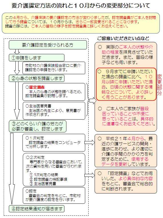 - 必要なもの: 介護保険被保険者証、申請書、主治医の氏名と病院名がわかるもの。